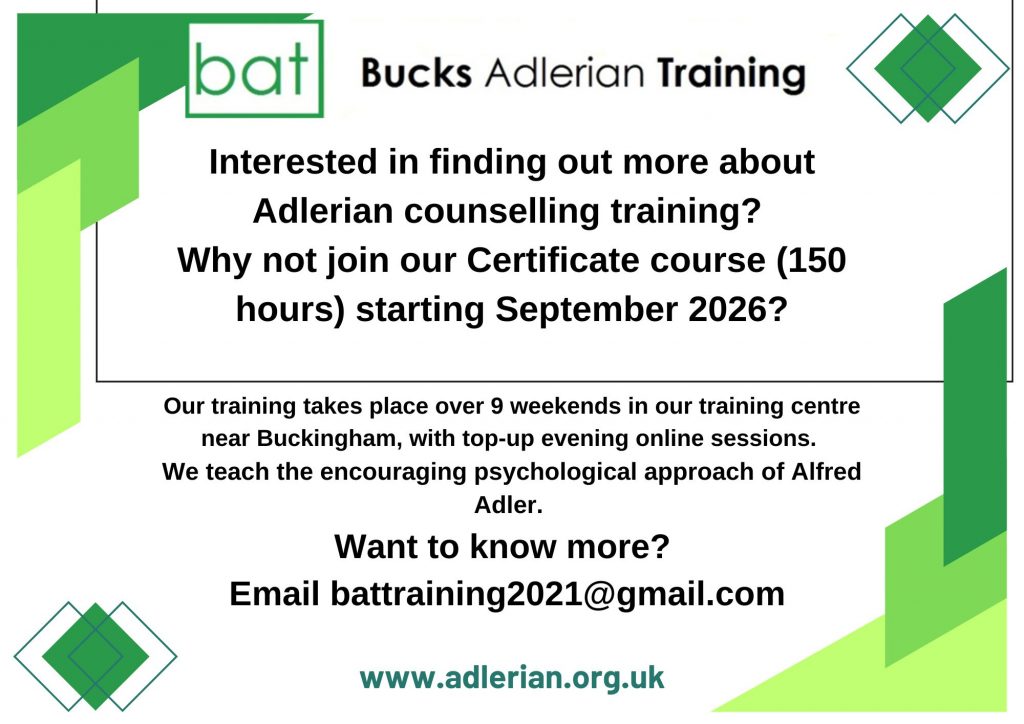 Bucks Adlerian Training is an organisational member of the Adlerian Society UK and Institute for Individual Psychology and provides professional training courses accredited by ASIIP.